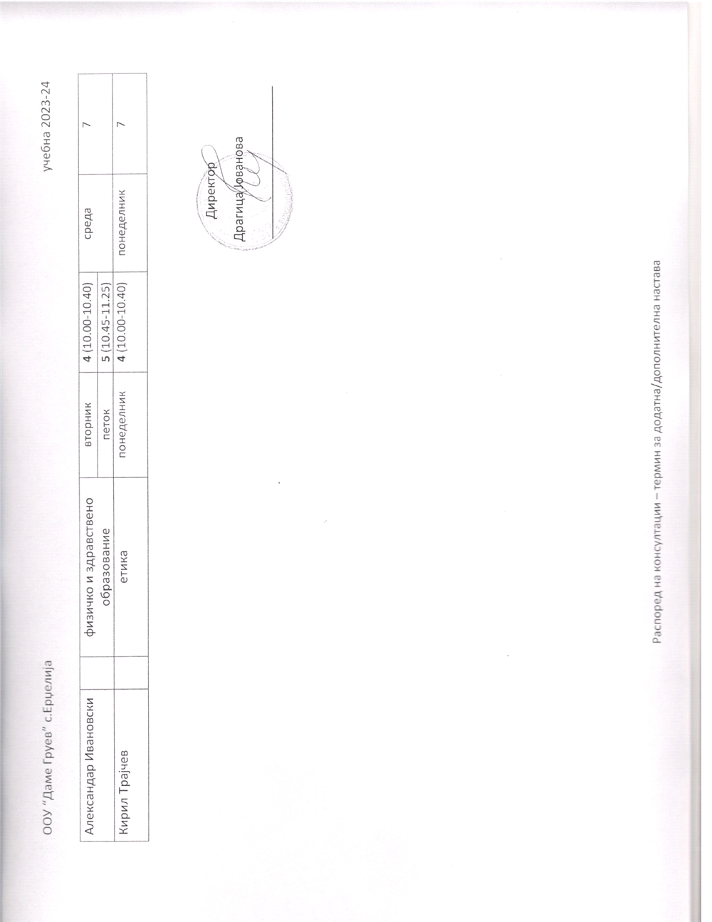 • Распоред за предавање